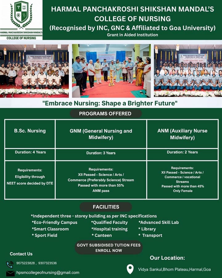 Harmal Panchakroshi Shikshan Mandal’s College Of Nursing have emerged as a premier Institution committed to provide standard Nursing education envisioned to graduate competent nurses empowered to serve the society with empathy and dedication.